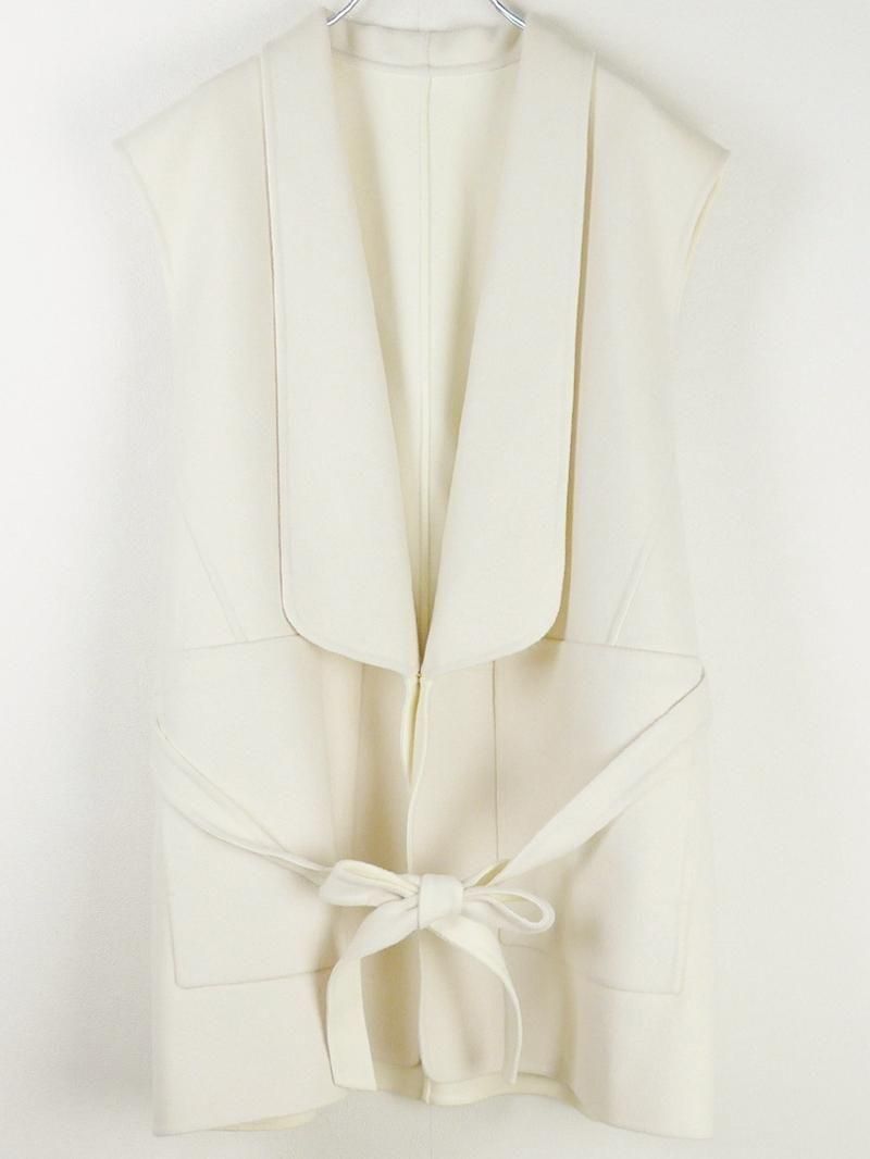 上質ウールケヌキ素材を使用、まるっと下にボリュームをもたせたショールカラーが印象的なジレ/ベストです。