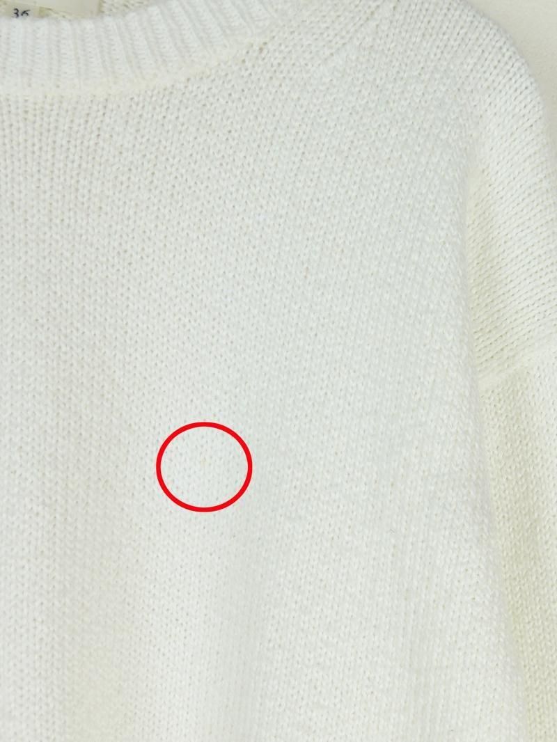 数回着用程度の美品。フロント・右袖それぞれ1箇所に微細な小ヨゴレ(糸の混入?)あり。目立つものではありません。元々素材特有の風合いのある商品です。