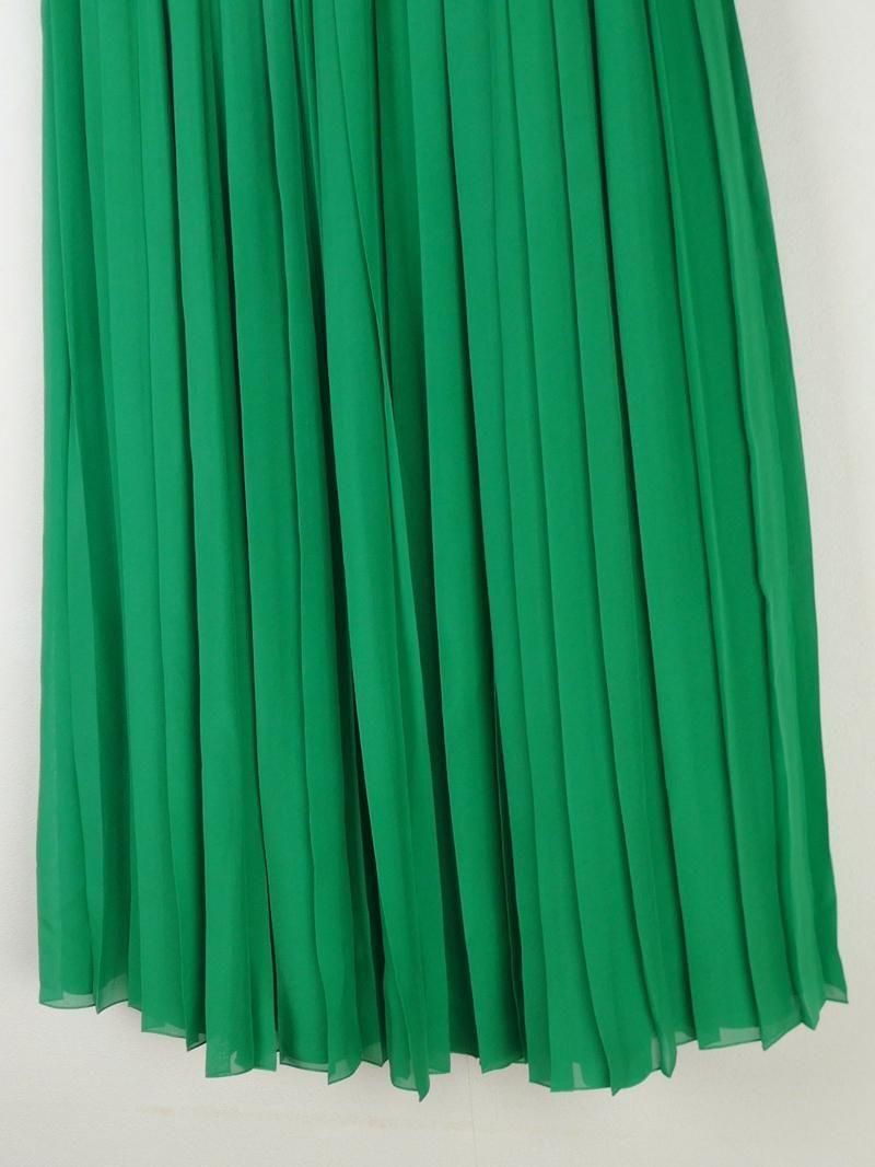 シンプルなアコーディオンプリーツスカートを、最高級シルク地と発色の綺麗なケリーグリーンでBLAMINKらしくエレガントに仕上げた一枚です。