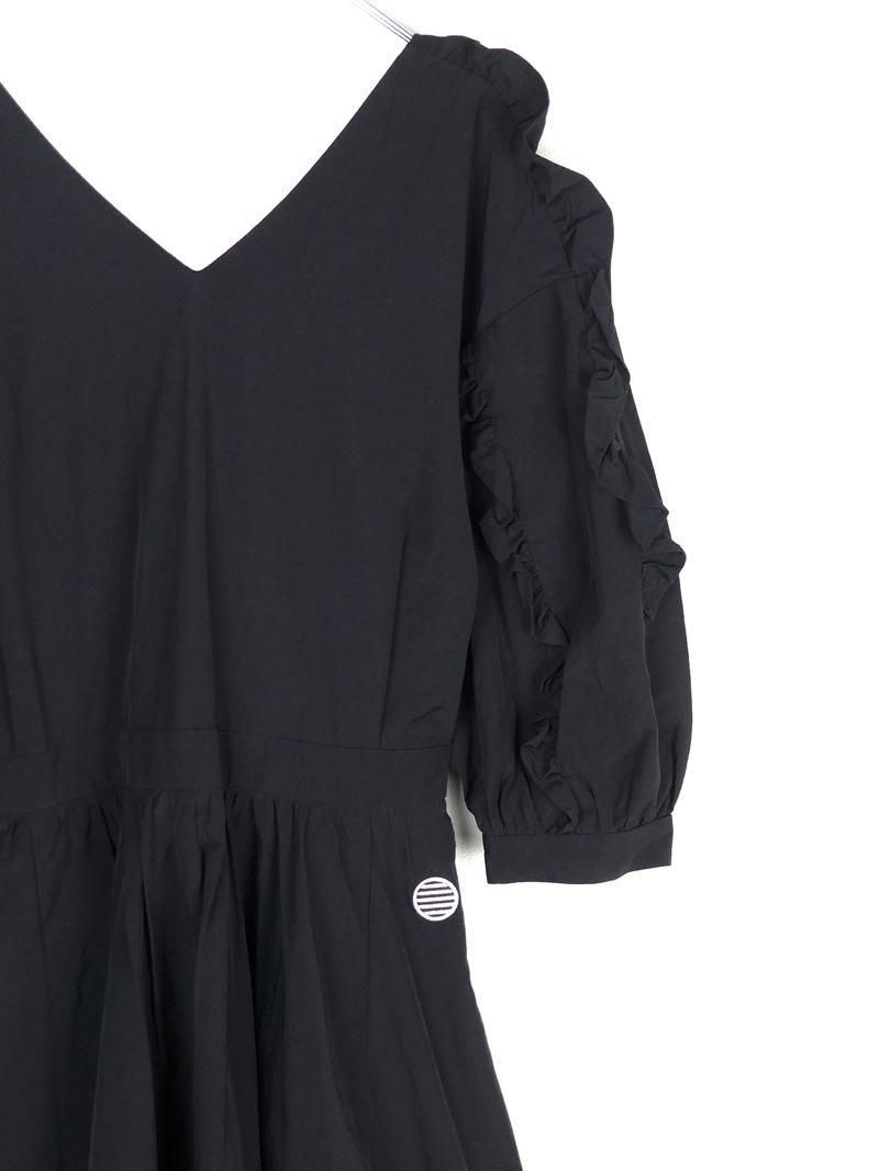 フリル付きのハーフスリーブがかわいい、前後Vネックのワンピース。