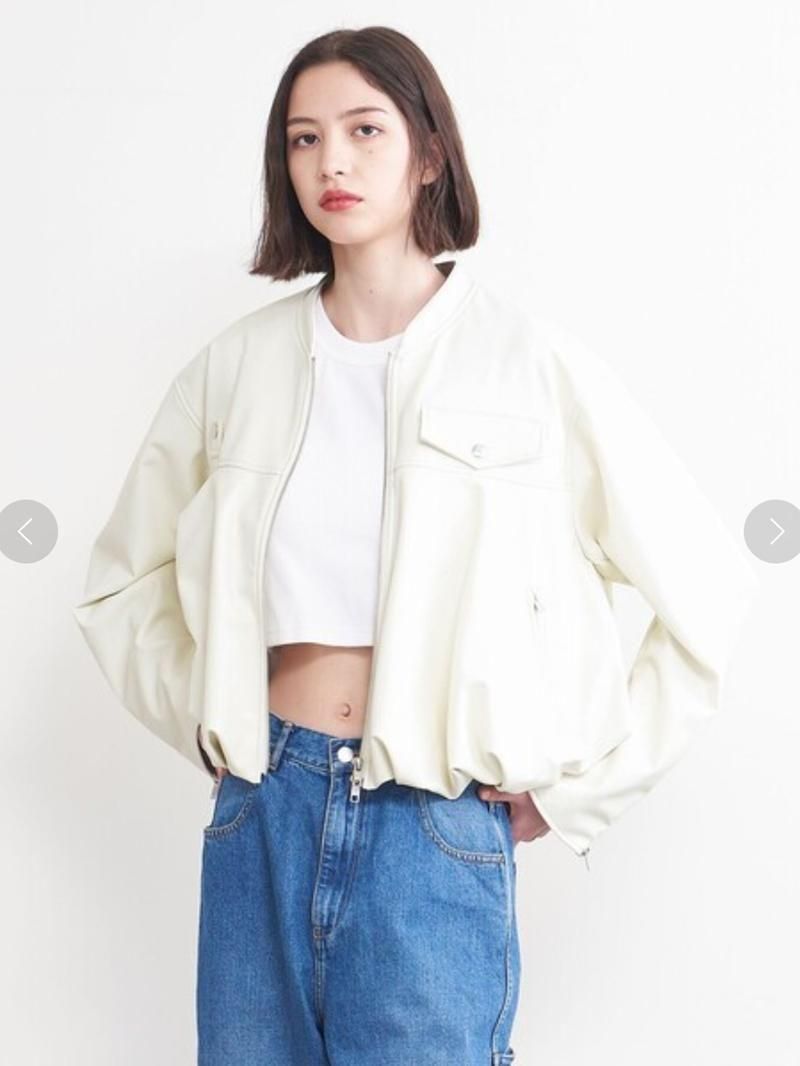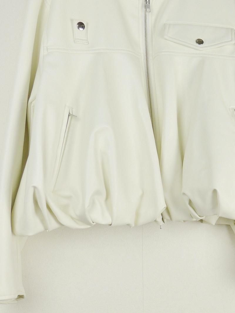 ミリタリーデザインにバルーンシルエットで女性らしさをプラスしたフェイクレザーブルゾン。