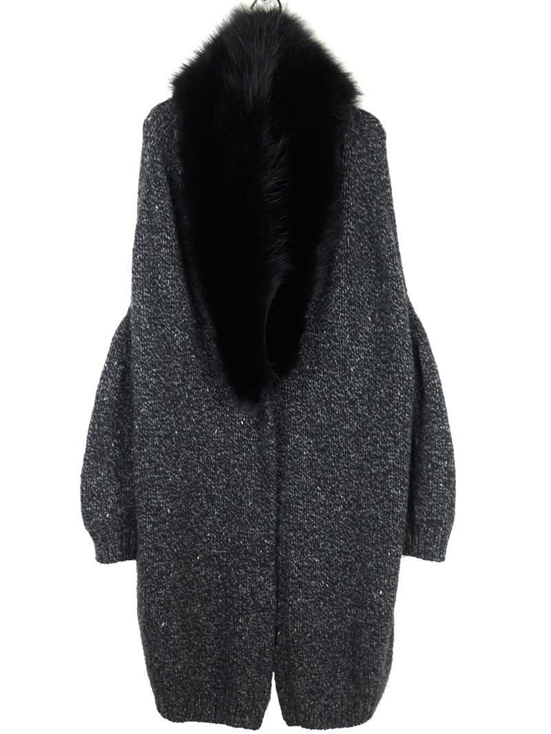 ジルサンダーのラクーンファー付きカシミヤカーディガン。