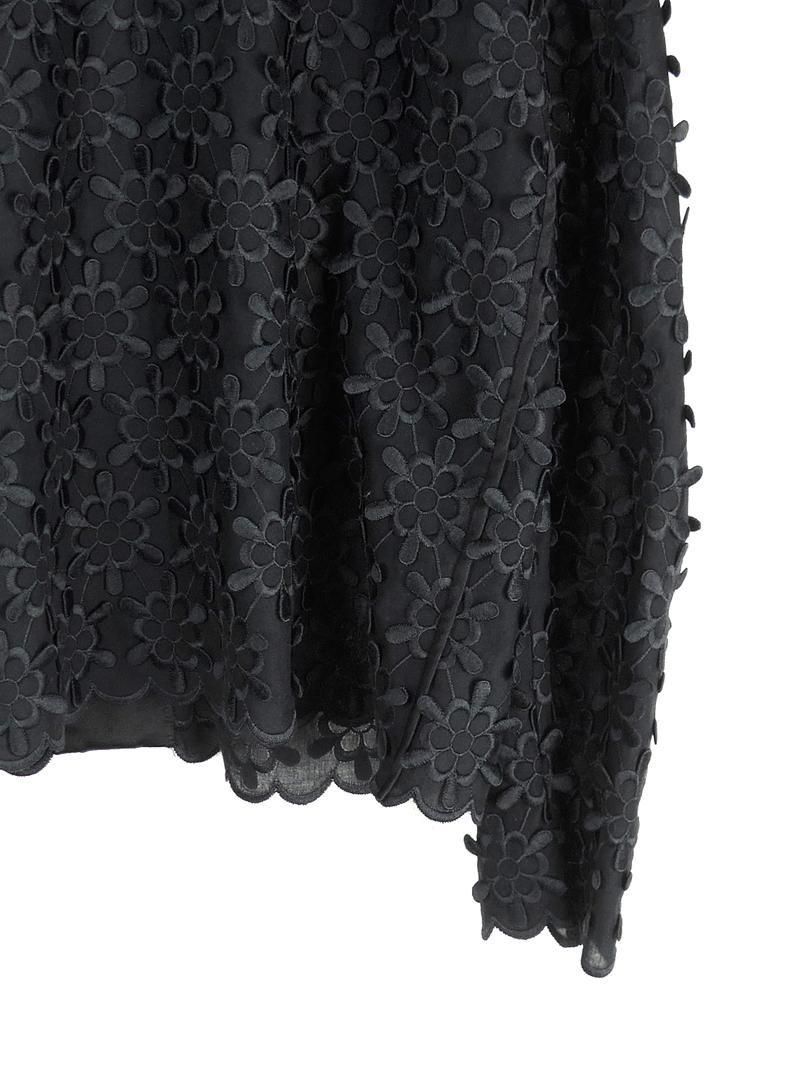 シームと背中部分にサテン地を施して、オールブラック・オール刺繍のなかにメリハリを生み出しています。
