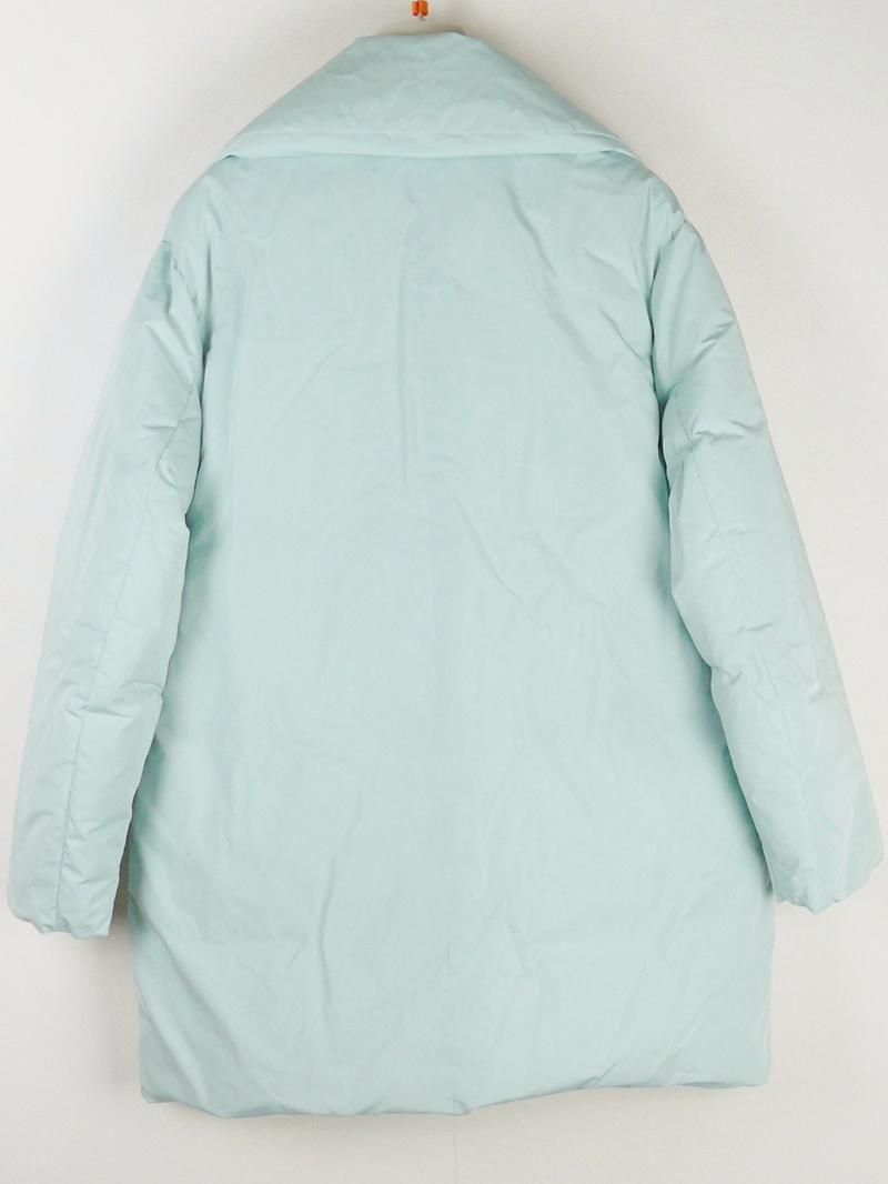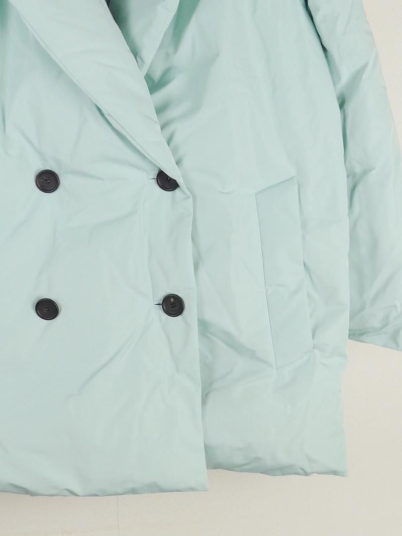 爽やかなミントカラーのミドル丈ダウンコート。経糸にポリエステル・緯糸にシルクを使用したタフタ素材は上品な光沢感があり、包まれるようなフォルムが女性らしさを引き立てます。